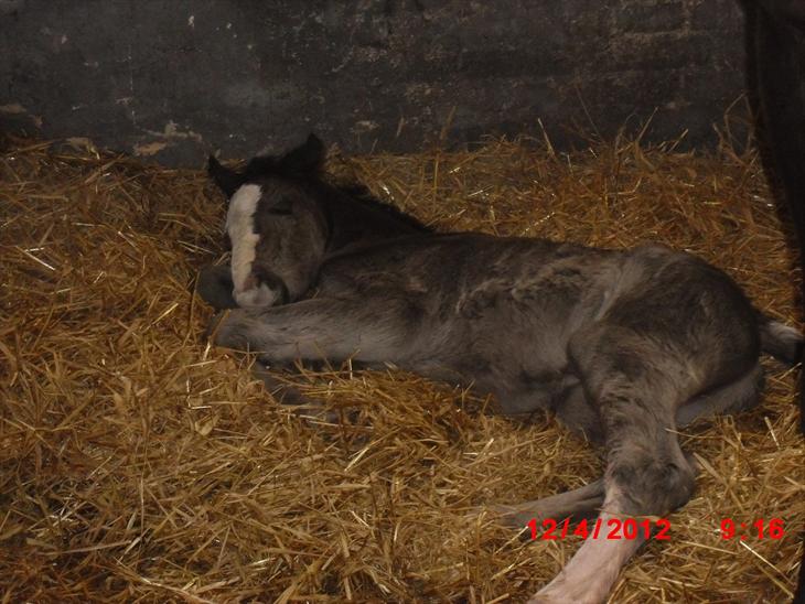 Stald ejer tjekkede kl 00.00 men der var ikke nogen tegn på foling, så han gik i seng men stilte ur til kl 05.00- og det var følle-bølle så tør og ren. Havde drukket sin første mælk og sov godt.