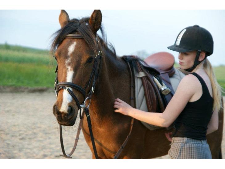 Første gang jeg sad på ryggen af hende, vandrede hun frem og tilbage langs den ene langside på ridebanen, og hver gang jeg forsøgte at få hende rundt på hele ridebanen, slog hun så meget med hovedet at jeg overvejede en tandbeskytter :O hun var i det hele taget en rigtig bølle, der ikke rigtig gad noget. Men vi tog stille og roligt 10-20 minutters skridttur næsten hver dag, og efter knap to uger kunne hun ikke drømme om at slå med hovedet (undtagen når hun er rigtig fræk :b ) og vi lavede cirkelvolter, skråt igennem, parader, og slangegange så det stod ud af ørerne på os ;D
