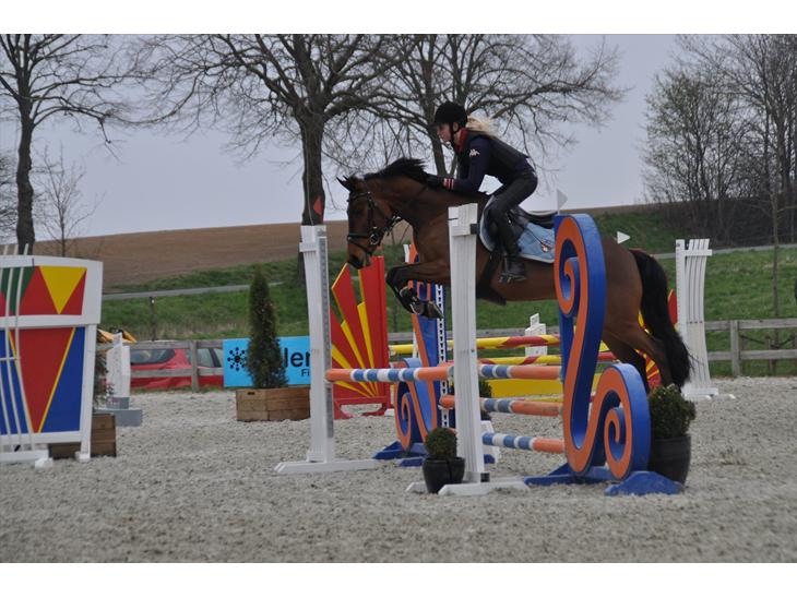 Ej Lille Bjørn springer rigtig godt og har gået 120 klasser med tidligere ejer i Sverige og første gang jeg sprang/sad på ham sprang vi 130cm UDEN problemer. Som 7års har han sprunget en bane hvor springne var mellem 135-140cm UDEN problemer hvor der var dobbeltspring, oxer, serie med osv.
