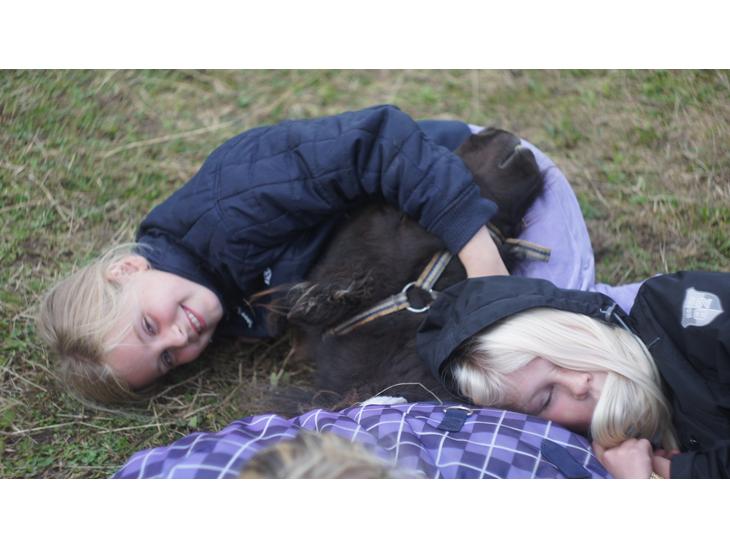 I går tog Sally, Signe og jeg en lur sammen med hende. Sally sad og nussede med en liggende Eri, jeg satte mig og straks fik jeg et hestehoved i skødet (man ved vel hvem ens menneske er!) og så faldt Erised i søvn. Sally brugte Eri som pude og faldt i søvn. Jeg tog mig også selv en skraber. Så kom Signe ud og lagde sig også og brugte Eri som pude. Det var 20-30 minutter Eri virkelig nød :D