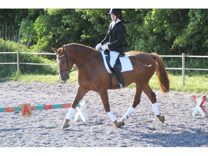 men efter den dag begyndte det at gå frem af med ham han begyndte stille og roligt at fatte bare at trave rundt galopen kom dog først efter en uges tid. der gik ikke meget mere end 3 uger så sad jeg på ham første gang det tog han rigtig pænt derefter gik der ikke lang tid før vi red rundt løs på ham vi bøvler dog stadig med den højre galop som han ikke vil slå i endnu men det går bedre for hver dag der går.