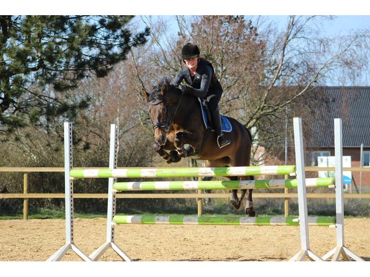 Hun er en super allround pony som kan lidt af hvert. Jeg er springrytter og det er næsten altid spring vi starter ude til stævnerne, som lige nu kører super fint til C-stævner.