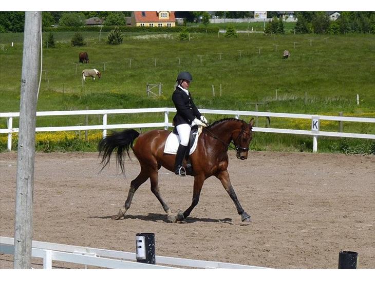 Hun bliver primært brugt til dressur, hvor vi arbejder os frem mod LA'erne. Hun har et kæmpe uudnyttet springtalent, som hun får lov at afprøve i ny og næ.