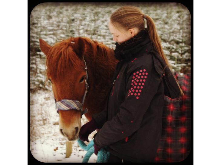 Vi købte Rose fra en rideskole oppe ved Viborg, fordi hun ikke egnede sig som rideskolepony. Hun blev egentlig købt til mine søstre, men hun var lidt for stærk til dem, så nu er hun min. Det er jeg bare så glad for.