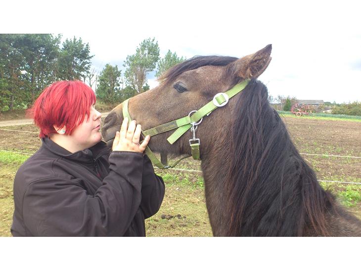 Han er lidt nervøs for nye ting men han har heller ikke prøvet så meget så det er jo nok det der er ved det. Han har det meste af sit liv gået og hygget sig på en fold med nogle kammerater og mere er der ikk gjort ved det. Han ser ud til at nyde og blive striglet og kan løfte ben rigtig godt allerede...