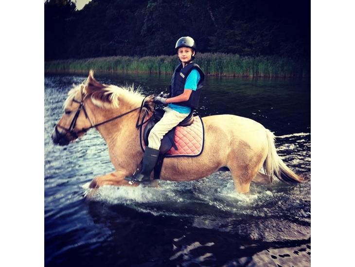 16-årig gammel hoppe, som blev købt i April. Den tidligere ejer havde købt hende ved en fejl og ønskede hende ikke alligevel. Det gik ret hurtigt med at købe hende, for om aftenen hvor vi havde fundet hende, ringede vi og snakkede med tidligere ejer, og hun fortalte at vi skulle ned og kikke på hende dagen efter, ellers blev hun solgt til en plejefamilie, som manglede en hest til sit plejebarn. De første to uger, blev hun kun redet i skridt og lidt trav fordi hun var i så dårlig kondi. Hun kunne ikke springe, men kan nu springe 90 cm. Hun er en fantastisk familie hest, og skal nok blive bedre til både dressur og spring. MERE TEKST KOMMER SENERE.