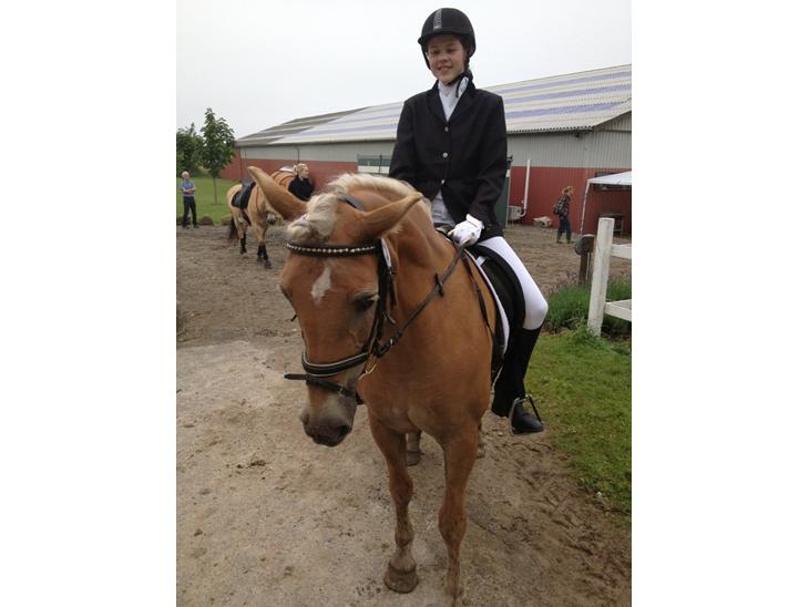 Efter lang tids søgen fandt vi sidste år den helt rigtige hest, der skulle være det næste familiemedlem hos os. Hun skulle være til mig og min lillebror, da vores fjordhest var lidt for stor en muldfuld for specielt min lillebror. Vi var nede og prøve hende og alle var enige om at det skulle være hende. Da vi fik hende hjem, fandt vi dog ud af at hun løb lidt stærkere end vi havde regnet med. Så hele sommeren arbejdede vi og vores ride lærer med hende, for at få hende ned i tempo. Det er stadig noget jeg arbejder med især i galoppen. Der er intet ondt i Morella hun er en fantastisk haflinger, der hos sin tidligere ejer har lært nogle sjove triks, som jeg forsøger at holde ved lige. I maj fik vi hende bedækket af Alban, og jeg glæder mig utrolig meget til føllet kommer.