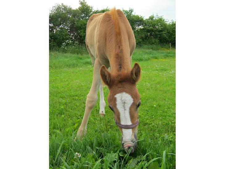 Den 7.5.12 kl 1.10 kom hun til verden. Rigtig smuk langbenet rødt hoppe føl med hvide aftegn.