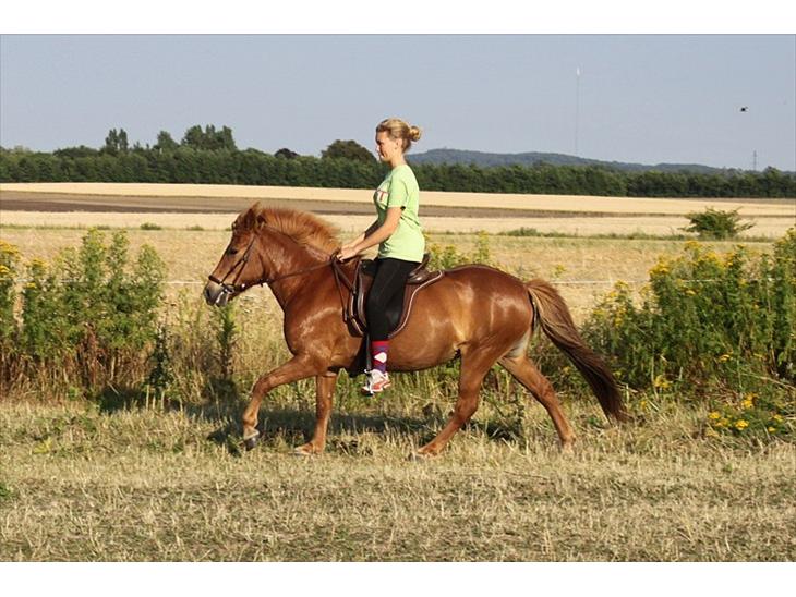 Tölten er ved at komme ordentligt frem nu. Vi troede ikke det var muligt, men min mor har allerede redet en del tölt på hende. Så nu ska hun rigtig tölttrænes.