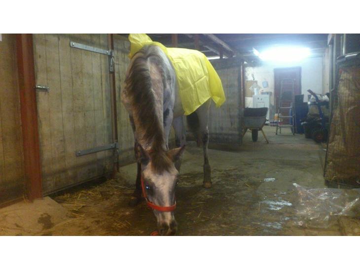 vi havde en hård start, da vi hentede ham, havde vi kørt 500 meter, så var han hoppet over forbommen i traileren, vi fik det problem løst, kørte nogle kilometer, så havde han spunget tovet i traileren, hvilket skete en gang mere på vej hjem, til sidst blev det for meget for mig, og jeg valgte at stille mig om i traileren til ham resten af vejen, han faldt til ro med det samme jeg stod deromme.. da vi endelig kom til stalden, og han skulle ud og hilse på hopperne, panikkede han og gik gennem hegnet, så satte vi ham på boks, der stod han bare og stejlede, så stillede vi ham på enefold hvor han kunne se hingstene på stedet, og endte med at sætte ham i løsdrift med dem, men om morgenen da der skulle ses til dem, var der ingen hingste, de to store blev fundet lidt henne af vejen, men lille fanta var ingen steder at se... han blev fundet 4 km væk, havde taget turen over div pløjemarker osv...