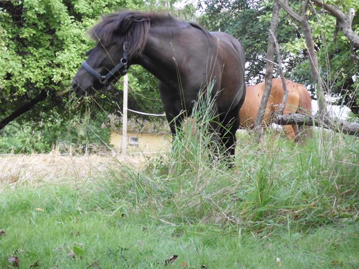 Er sortbrun med en meget lille hvid stjerne i panden.