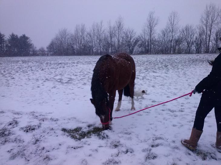 var ude og gå en tur i sneen i dag det nød han bere super meget han hygge sig utroligt han tog det bare stille og roligt som om det hele bare raget ham en skid