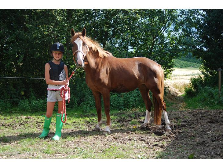 hendes mor er welsh pony og hendes far er hannoveraner<3