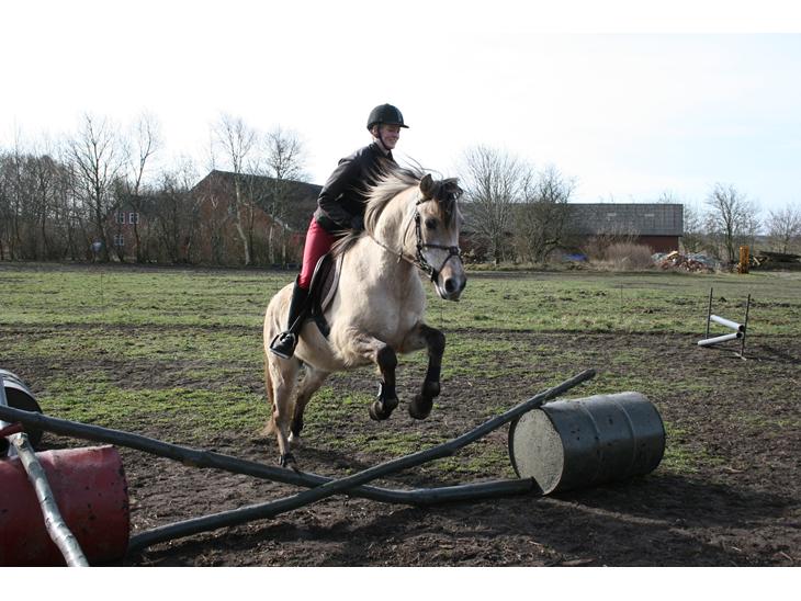 vi har sprunget 70 cm på enkelt spring og ca. 60 cm på bane, og han er kun sprunget 3 gange!