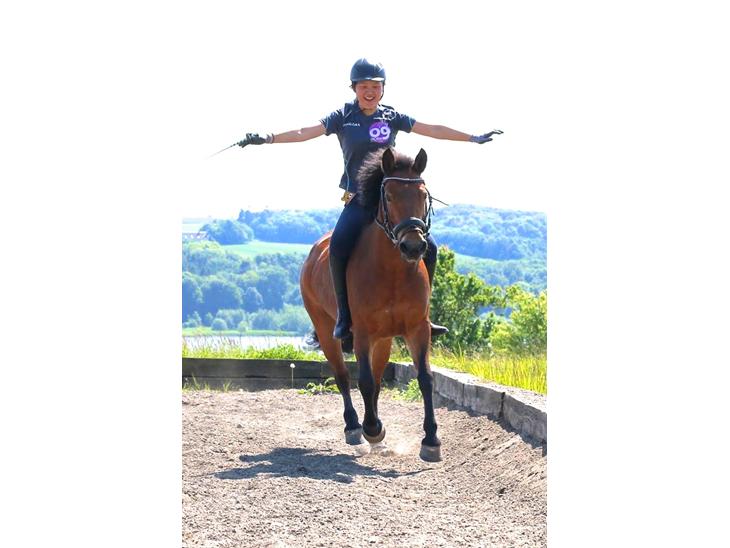 På ridebanen er hun lidt af en bølle, men så snart man kommer ud på staldgangen er hun altid klar på at blive nusset!