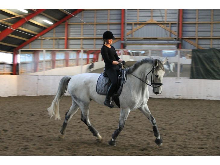 I stalden er han stille og rolig, lidt opmærksom hvis der kommer andre heste i stalden.