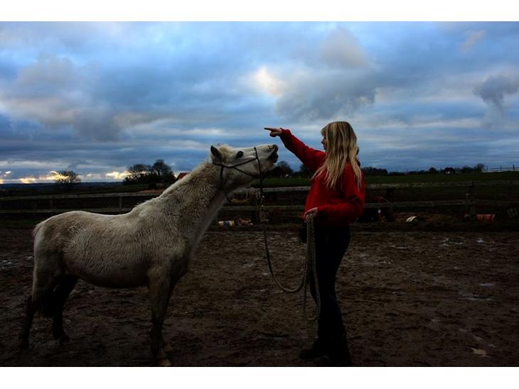 Vi laver klikkertræning hvor vi øver en masse spas da hun ikke er et super oplagt rideemne. Hun sprænger gerne låger med rytter på ryggen og er en rigtig lille mogge, men hun har heldigvis fundet glæden ved trick træning og har herigennem lært en masse.