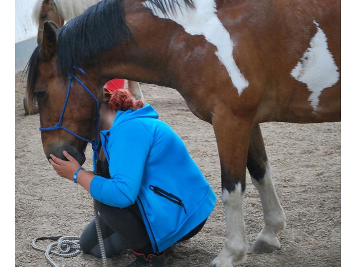 Han kan godt finde på og sparke ud efter en hvis man står på jorden. og han er utilfreds. han bider ud efter folk, hvis man ikke er over ham. da jeg startede med at galopper på ham, lavede han bukspring med mig, fordi han syntes det er sjovt, men han gør det ikke mere.