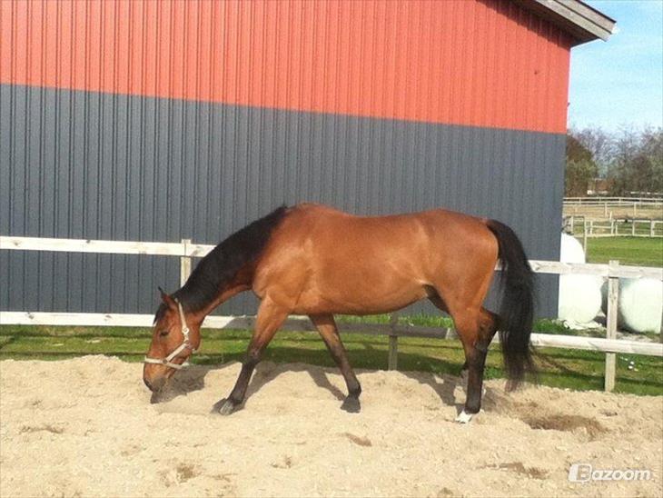 Jeg arbejde med ham det sidste ½ år inden han blev aflivet. Jeg fik ham til at gå fra en spændt og stresset hest, til at være afslappet og kunne rides både med og uden sadel, lige ud og på volter i alle gangarter, og ikke mindst traves af for løse tøjler uden han stak af.