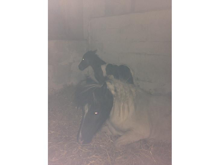 Vi vidste ik perle(moren) var med føl da vi sagde ja til at købe hende men hun var godt tyk og hendes yver begyndte at vokse og hendes mave voksede og hoppede rundt:) gamle ejer siger de ik vidste hun var med føl. Men det var hun for vi fik en lille surprice følle :) men hun var velkommen :) gucci er super sød og et dejlig føl utrolig kontakt søgende og fuld a fart når hun er ude på marken:)