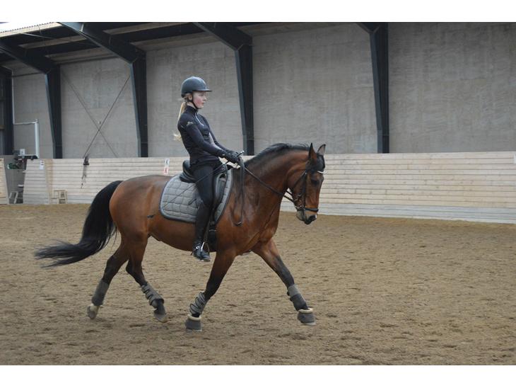 Skridten er ikke lige hans stærke side, men vi arbejder på det og med hjælp fra min underviser har han fået noget mere ryg sving og træder bedre over.