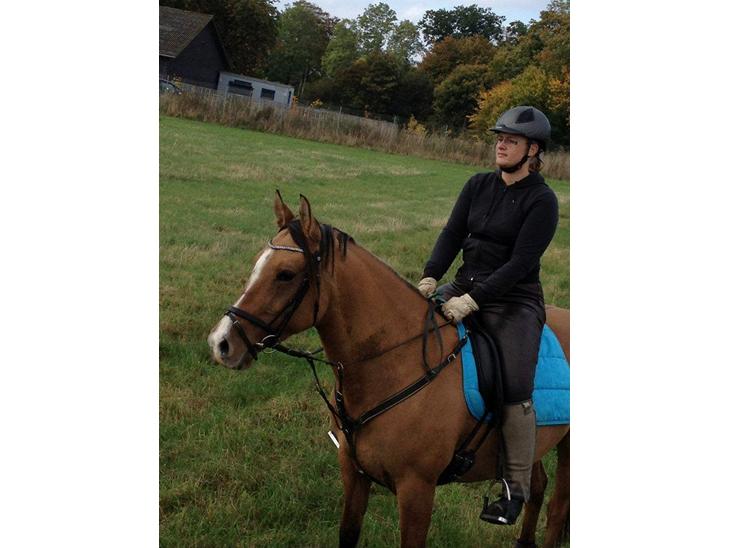 Jeg begyndte at ride hende helt selv og vi fik et HELT speciel bånd sammen. Hun var meget vågen, men prøvede aldrig at få mig af. Hun panikkede en gang imellem, men jeg "gik bare med". Men man skulle tænke sig om når man red hende, mobilen skulle ikke være på lyd, ikke åben jakke og ikke skridt tæppe på. Da det mindste kunne forskrække hende og der gik MEGA panik i det. Efter hånden fik jeg vendet hende til nogle af de ting og vi blev uadskillelige.