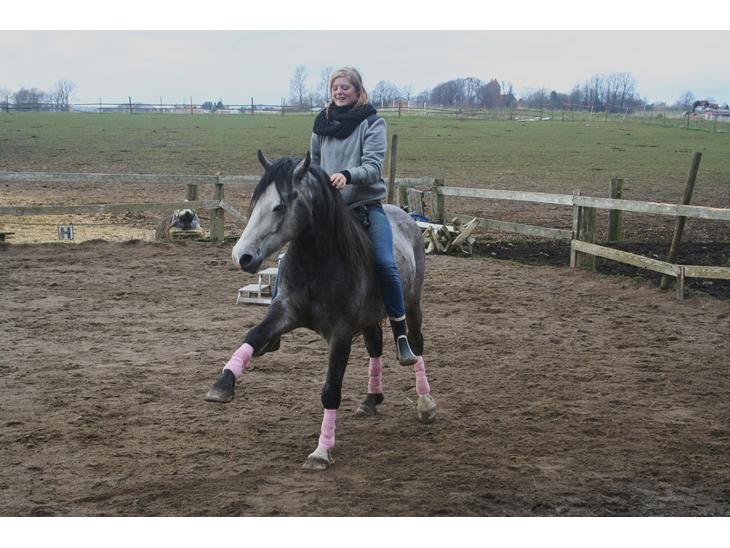 Sara Knudsen har i forvejen trænet ham i halvandet år, og desuden gjort ham ryttervant. Dette hjalp mig meget til ikke at skulle starte helt fra bunden af med ham.
