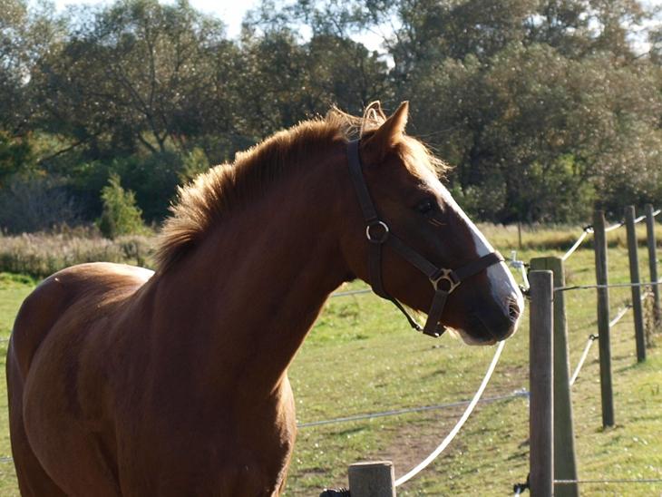 Dagen efter longrede jeg ham igen. Da han var varmet op i longen, satte jeg mig op på ham, og min mor holdt longen. Det var meget bedre. Vi red i alle gangarter. Enklete gange stoppede han op, men så var vi hurtigt efter ham med longe pisken. Det skal lige sigen at vi ikke slog ham med den, men blot fik den til at sige en høj lyd. :) Til sidst kunn jeg så fjerne longen og næsten ride selv. Fantastisk! Samme dag, fik vi at vide at han er aldrig helt er blevet tilredet/opdraget. At han er vand til at ride bag ved en anden hest, eller blive trukket af et menneske. Det han havde brug for, var en bestemt rytter, der vidste hvad der skulle til og viste ham hvad han skulle gøre