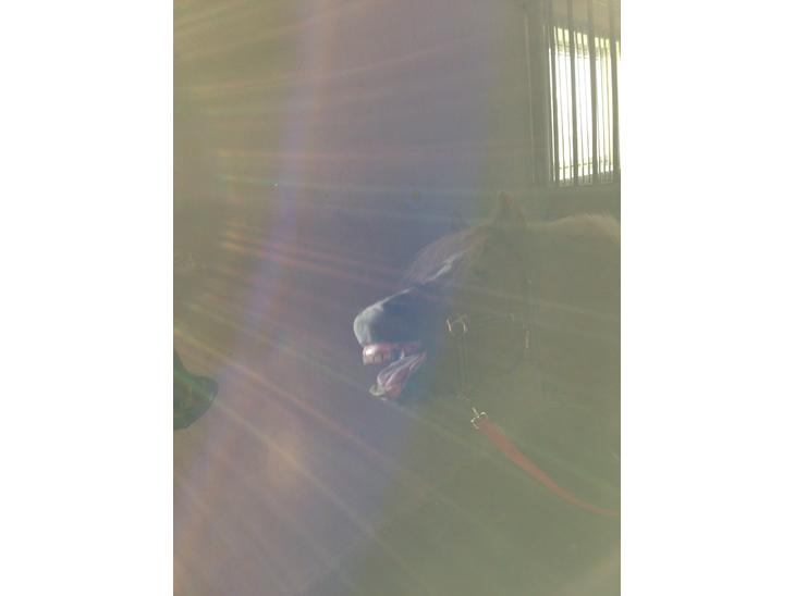 Hun har også været med på stranden, hvor en pige der hedder Melanie red på hende og fald af hende fordi der kom en bølje.