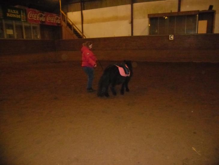 Hun er rolig, og passer til det vi vil bruge hende til, nemlig til vores 3 års søn, der skal til at lære at ride. Han har haft hans første skridt tur på hende, og hun er en fantastik pony, Som venter på ham, når han skal op, og først går når vi siger til.