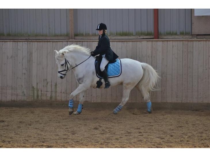 Vi rider dressur, spring (stævner), skovture og jagter, og han er en super allround pony.