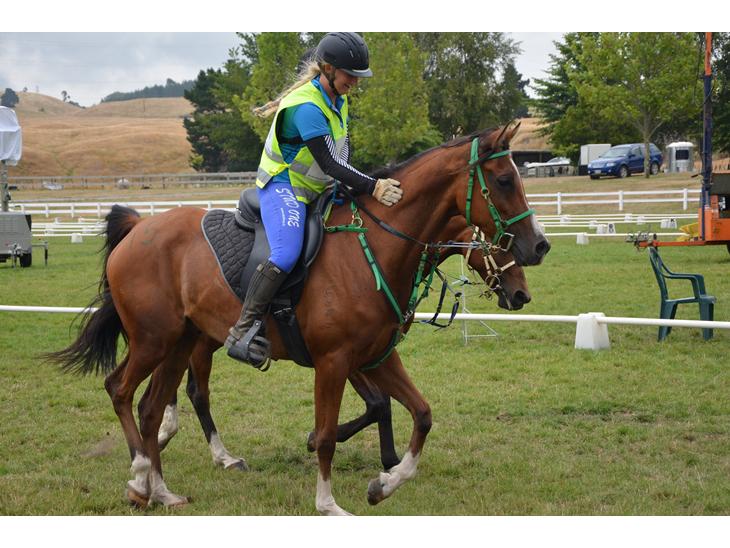 Karma står på den gård jeg arbejder på (på New Zealand) og jeg er heldig at få lov til at ride stævner på ham.