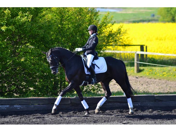 Damsel er en kul sort hoppe, med 3 sokker og en lille stjerne i panden.