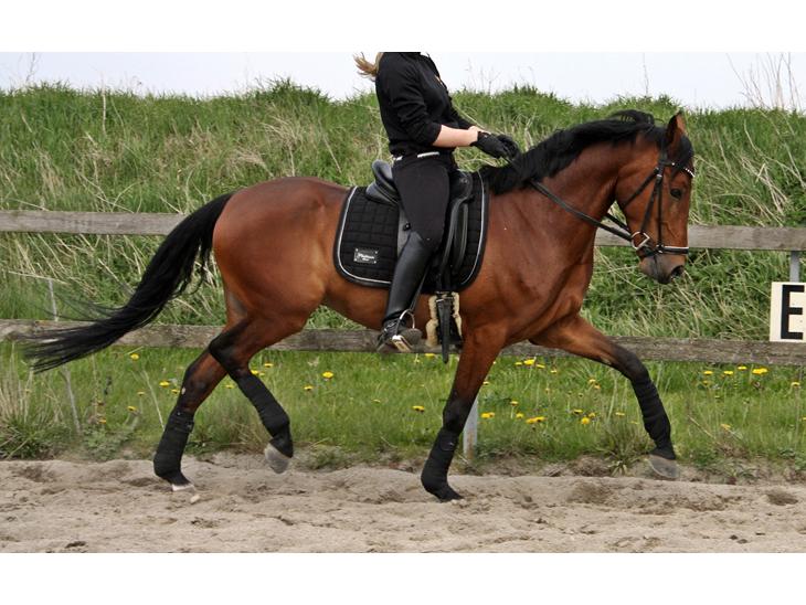 Han er meget rolig inde i stalden, nok mest fordi han "lader op" til rideturen, hvor han har rigtig meget energi, som han udnytter på den gode måde! ;)
