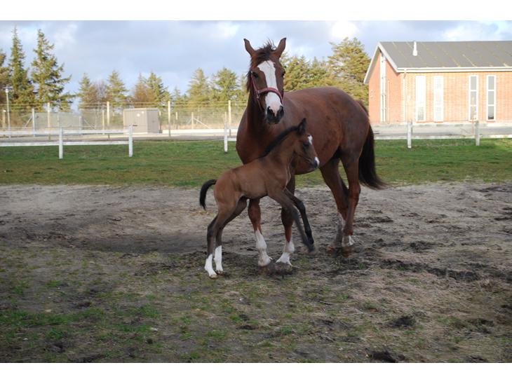 Amazing kom til verden tirsdag d. 18.3.2014 kl ca. 15.35 (1 dag over termin) på folden blandt de andre heste som stod rundt om og holdt vagt. Hun er efter vores holstener hoppe Ideal og vores Blue Boy.