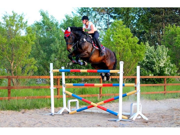 Vi har sprunget 130-140 cm i bane og 165 cm på enkeltspring, og vi er først lige begyndt
