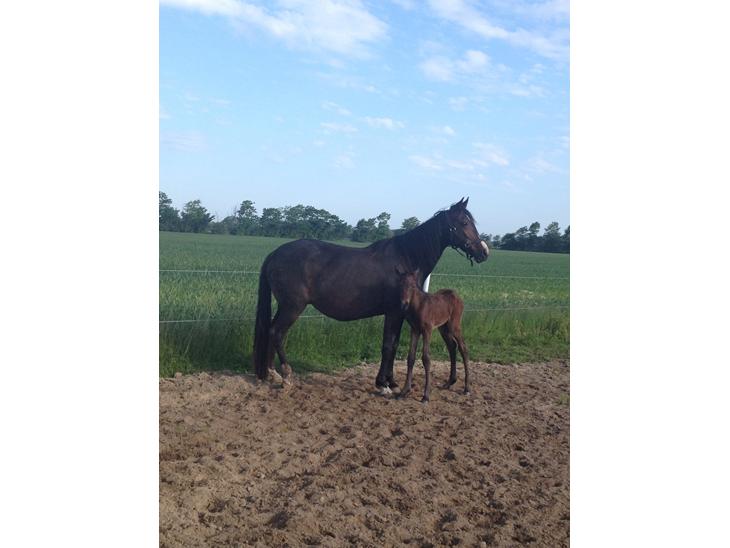 Tessa kom til verden fredag morgen d. 30 Maj. Hun er et smukt langbenet brunt hoppeføl uden aftegn :-)