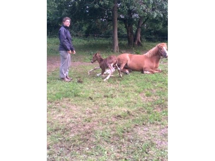 første tror vi det var en hoppe med så da det var lyser på dagen fandt vi ud af det var endnu en hingst føl vi hede fået og vi så hende føde det smukke rød lille hingst med stjerne
