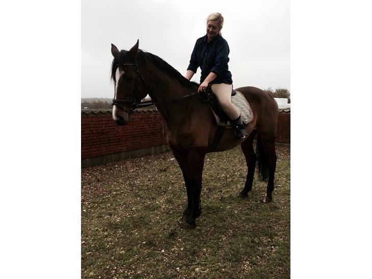 Rolig, men opmærksom under rytter. På stald er hun et rigtig nussehoved.