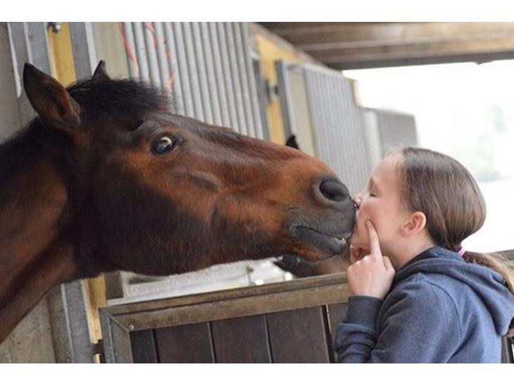 Han er rigtig sød i stalden. Man kan røre man over det hele uden han bliver sur <3 Dog kan han blive lidt for glad, når han får godbidder mens jeg sadler ham op.