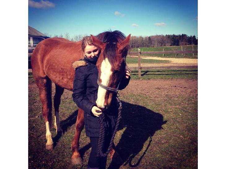 Jeg var oppe og kigge på Tekanze D.2/4-15 og var forelskede med det samme! Hun var dejlig nem og arbejde med når man tænker hun ikke er blevet brugt i 1,5 år! Idag D.3/4-15 hentede vi så hende da jeg ikke kunne leve uden hende! Hun har kørt i trailer en gang før også denne gang og hun gik bare op og stod pænt hele vejen hjem og gik stille ud af trailer da vi kom hjem! Da hun kom ind ordnede vi hende ( klippede man,hale, og kodeled:) vi gav hende en ordenlig omgang strigling og hun nød det fuldt ud med mad i krybben! Hun er meget tynd og har ingen muskler pt, men håber at jeg kan få lavet det om og at hun kan blive min nye spring stjerne!