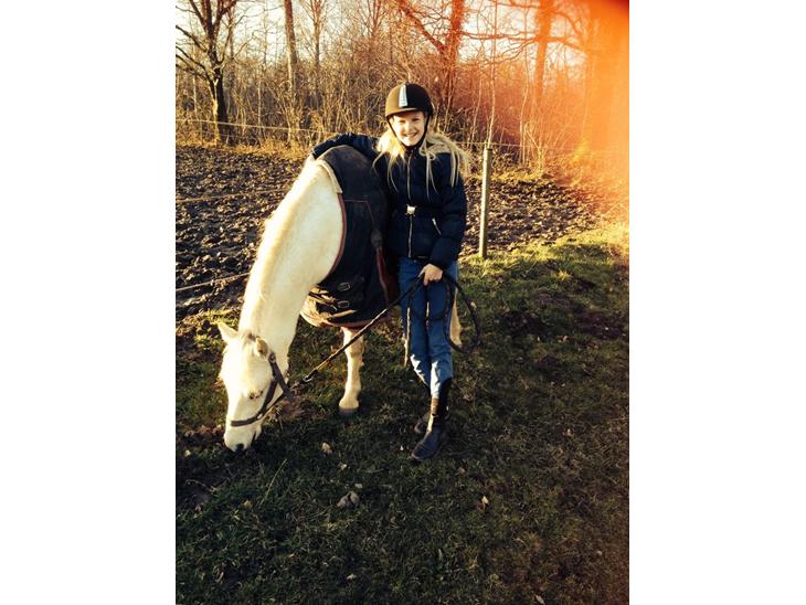 Jeg købte Serenity hos Sofie Dreyer juni 2014. Han er en rigtig dejlig pony. Jeg rider både spring, dressur og skovtur. Vi har også redet Ponygames og han har prøvet at springe lidt i terrænet. Vi kalder ham for Basse(n). Han elsker at rulle sig. Han er utrolig sød både i stalden og på striglepladsen. Han elsker at nusse og hygge og blive striglet. Det bedste sted at blive striglet er oppe ved ørerne. Han har lært at kysse og så får han selvfølgelig en hestebolche, når han gør det. På marken er han bare den bedste. Han er en utrolig social pony og ønsker at blive venner med alle de heste han møder, både på marken og alle steder. Han kan med ALLE andre heste. En dejlig egenskab at have. han er aldrig sur og byder os gerne velkommen, når vi kommer i stalden. Han er bare en stor charmetrold