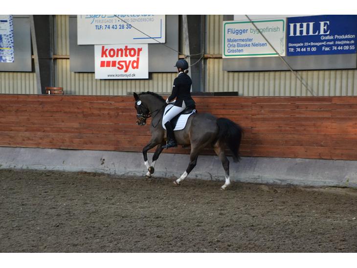 Har redet ham et stykke tid nu og han klare det hele i stiv arm. Det er bare helt fantastik. Har redet galop på ham 4 gange her hjemme nu og den ene gang sprang han an kun for benene. ( Han plejer lige at skulle have lidt hjælp ).