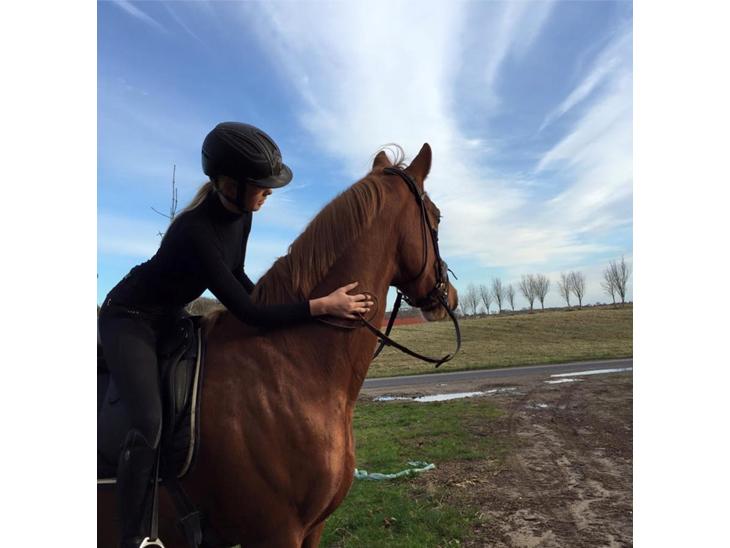 Jeg købte Kiwi den 31. oktober 2015 og er simpelthen bare SÅ glad for hende! Hun er en hoppe på 11 år, som dog først blev tilredet som 10-års. Hun har i de 10 første år af sit liv bare gået på fold og hygget. Hun er utrolig lærenem og jeg ser frem til en helt masse stævner og oplevelser med hende !