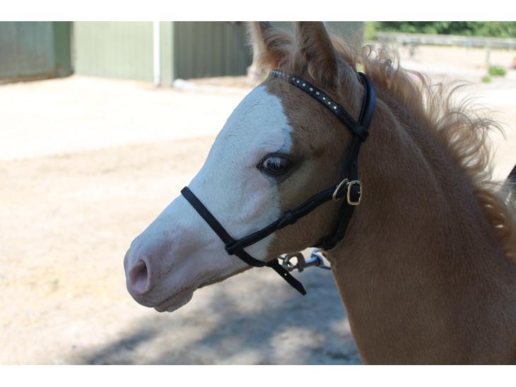 Elektra er et meget smukt og specielt føl, hun har en rigtig flot farve med 4 hvide sokker og en stor blis og et brunt og et blåt øje.