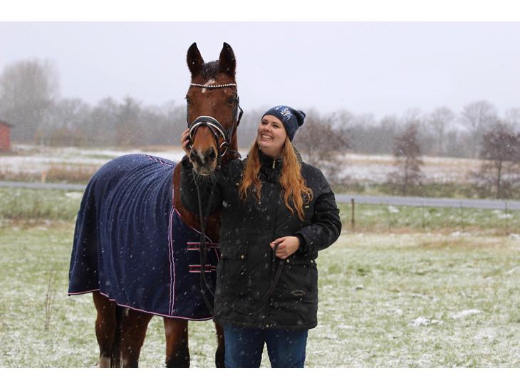 Desværre nåede jeg kun at ride hende et par gange, da hun havde et uheld på marken, hvor hun gled. Så i øjeblikket står hun stille med en mulig seneskade.