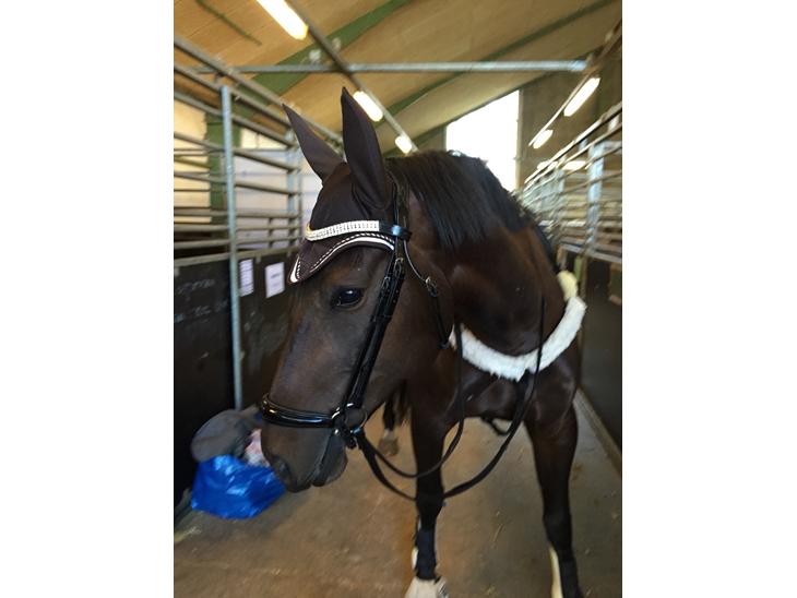 Hun er ikke lige den hest der er bedste venner med alle og hendes boks er hendes boks, så hun har det med at ligge ørene tilbage men hun hverken bider eller sparker.