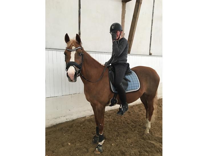 Jeg har nu haft Madonna i ca. 5 måneder, og hun er så flink og sjov altid! Desværre har jeg ødelagt mit knæ fuldstændig på skiferie, så Madonna har været i ridning ved min træner. Forhåbentlig er jeg snart frisk igen, så vi kan få startet stævner.