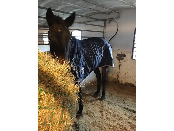 Jeg har hende stående uden kæder på staldgangen og kan gå rundt omkring hende og røre hende over alt uden hun gør noget. Hun står rigtigt pænt når hun skal have udstyr på.