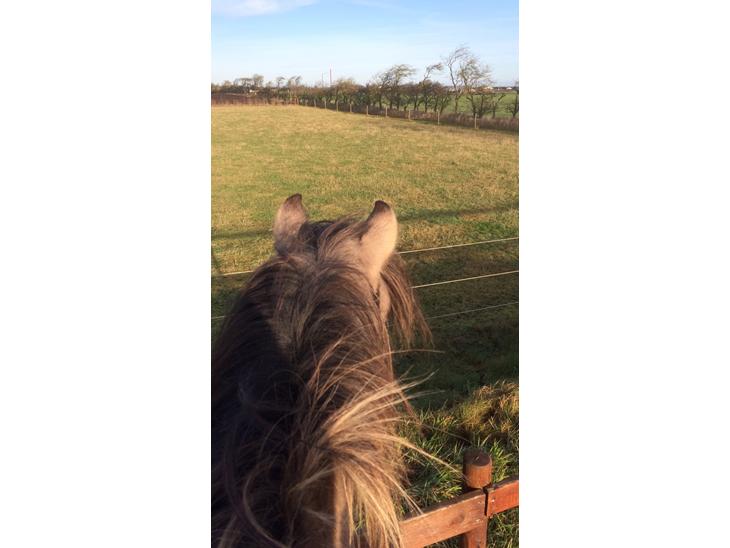 Efter ca 20 års pause har jeg igen taget interessen op! Jeg faldt for Asti da hun af udseende har stor lighed med min gamle pony. Hun har stået stille de sidste 2 år og vi prøver nu sammen at finde en fælles vej. Hun rides bidløst og med en lammeskindssadel. Vi arbejder en del fra jorden hvor du følger mig rigtig fint. Målet er at hun kan rides i skrit, trav og galop så vi kan komme på skovture.